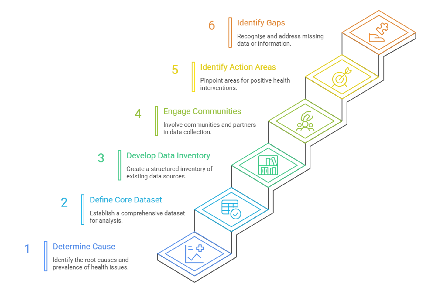 Defining a core dataset is an important output of this stage and is key to enabling collation of the most relevant information to inform the agreed scope and aim of the JSNA. Developing an inventory of existing data and intelligence sources for a core dataset is important to keep everything in one place and can be used as the basis for future JSNAs.