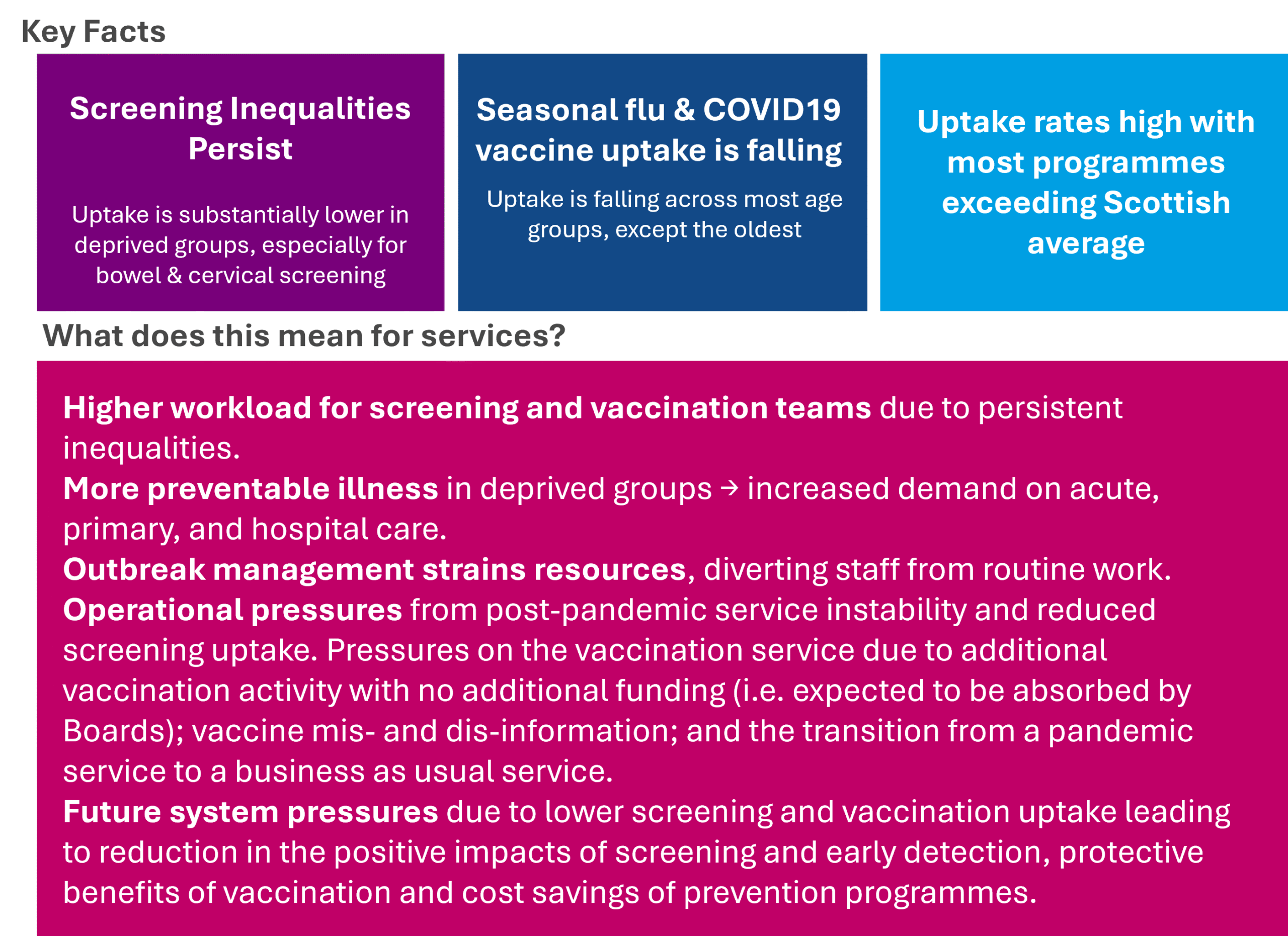 The aim of vaccination is to protect as many children as possible. NHS Grampian’s vaccination campaigns, including autumn/winter COVID-19 and flu, shingles, pneumococcal, RSV and childhood programmes, have consistently achieved high uptake rates, with most cohorts exceeding the Scottish average. Although vaccine rates are generally high there are pockets of low uptake, mainly in the urban areas linked to deprivation.